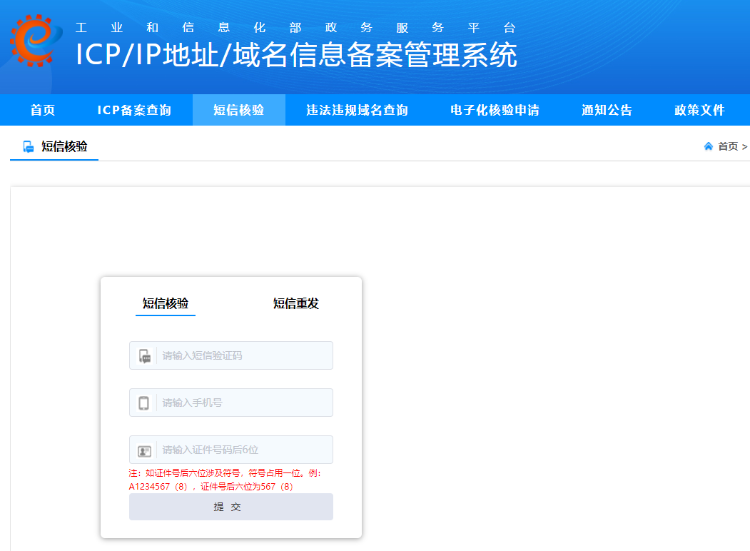 其中提交至工信部之后有一個(gè)關(guān)鍵性的步驟即:工信部短信驗(yàn)證,具體情況參考以下詳細(xì)說明。