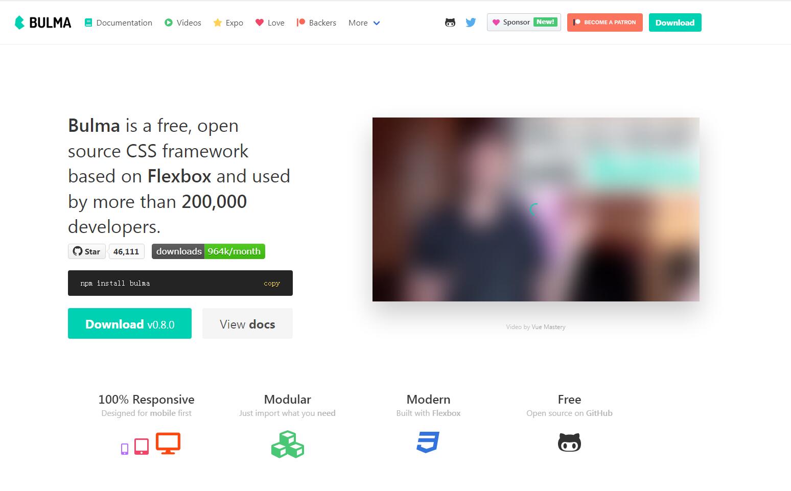 Bulma 是一個(gè)基于 Flexbox 布局技術(shù)的免費(fèi)、開源的現(xiàn)代 CSS 框架,它提供了易于使用的前端的組件,您可以輕松地組合這些組件來構(gòu)建響應(yīng)式Web界面。