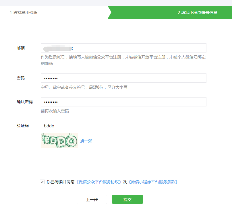 注冊小程序方式有兩種:單獨注冊小程序”和“復(fù)用公眾號資料注冊小程序”