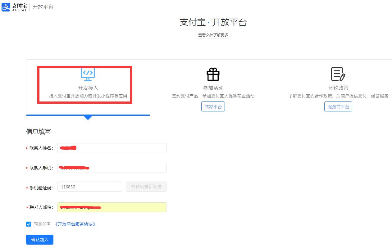 (1)登陸支付寶小程序官網(wǎng):https://open.alipay.com/ 點擊“登錄支付寶”,申請入駐支付寶的開放平臺,點開發(fā)接入。