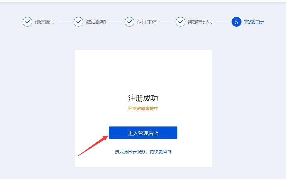 點擊激活郵箱,騰訊會發(fā)送一封激活郵件到所填寫的郵箱賬號,點擊郵件中的鏈接,跳轉(zhuǎn)至“認證主體”頁面。