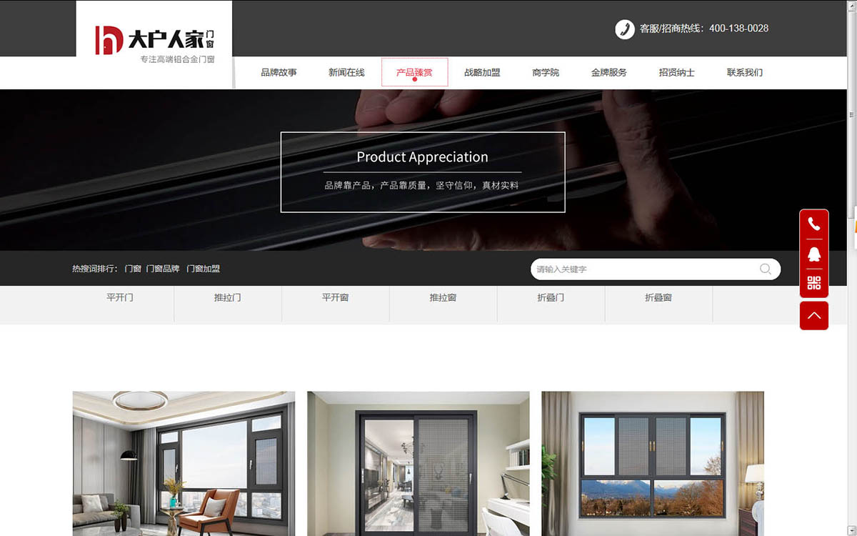 風(fēng)信網(wǎng)絡(luò)響應(yīng)建站某門窗有限公司是一家集研發(fā)、生產(chǎn)、銷售、服務(wù)為一體的全屋鋁合金門窗定制企業(yè),公司位于珠三角軸心城市,中國鋁材之都佛山南海,坐擁一手優(yōu)質(zhì)鋁材資源,廠房規(guī)模達(dá)50000㎡,以品牌化、專業(yè)化、市場化的經(jīng)營理念,打造健康環(huán)保門窗款式。